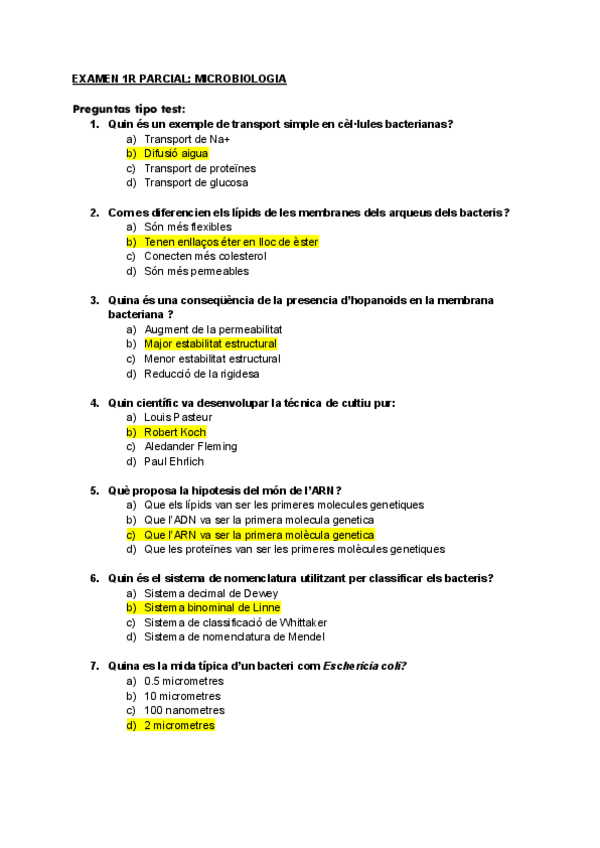 He publicado nuevos examenes de 2º Microbiología General: Primer parcial (Exàmen)