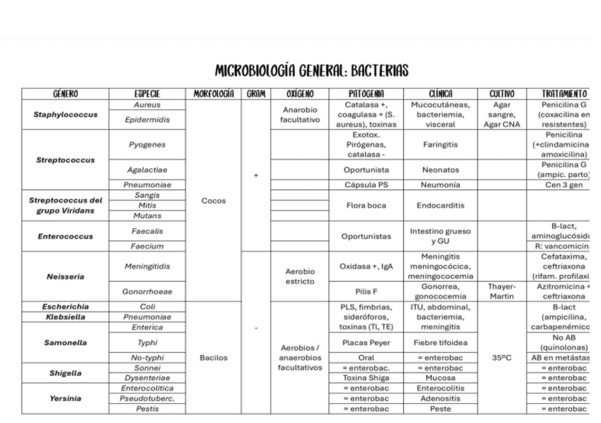 He publicado nuevos apuntes de 2º Microbiología I: TABLAS RESUMEN BACTERIOLOGÍA