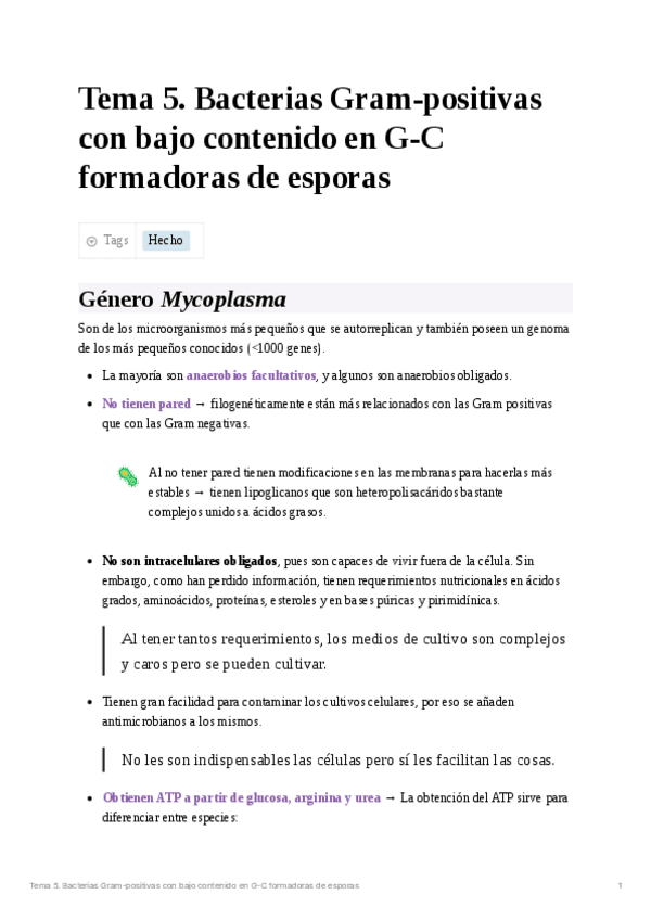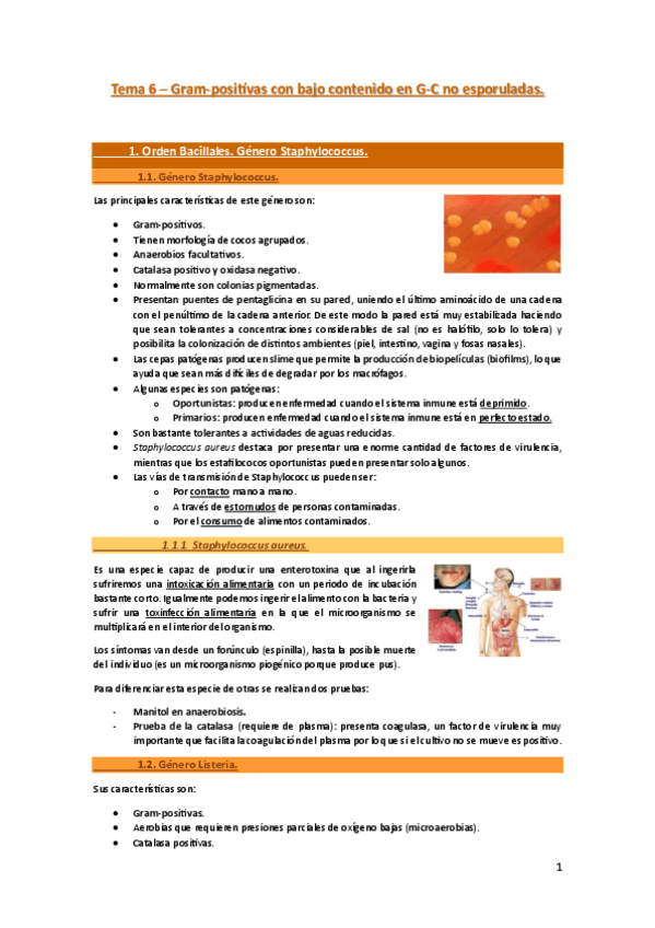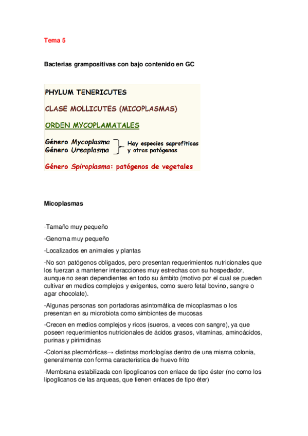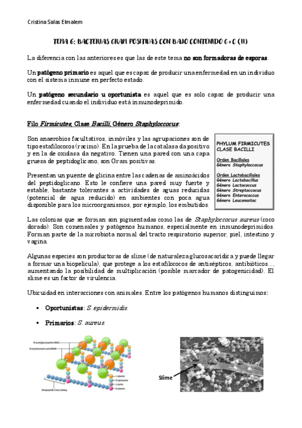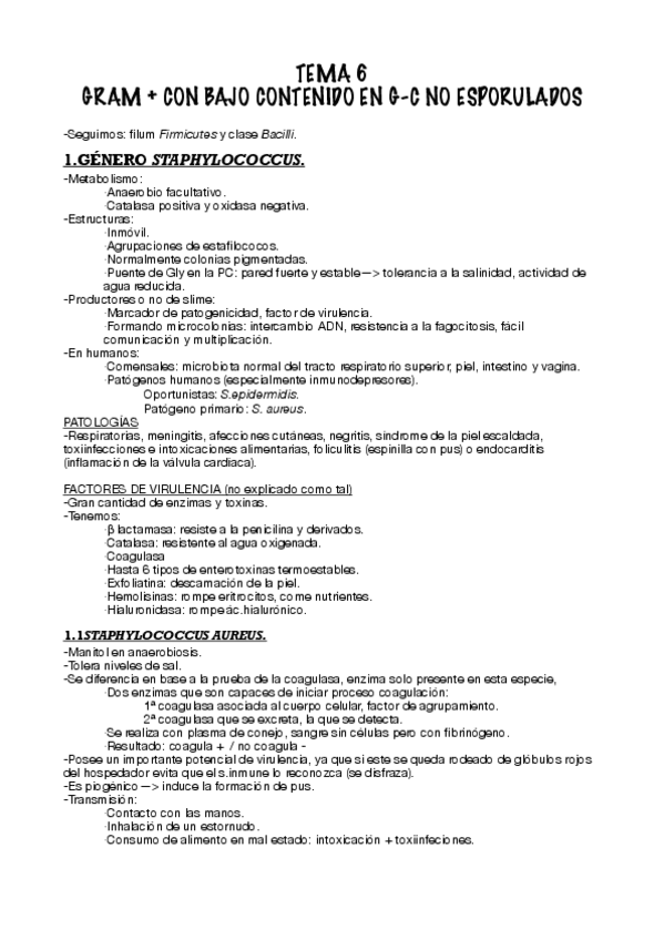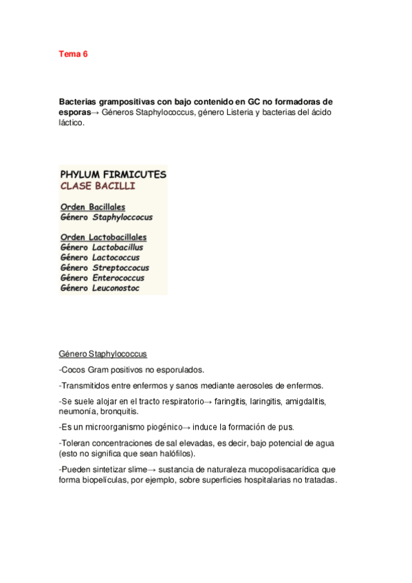 He publicado nuevos apuntes de 3º Microbiología II: Tema 6. Bacterias Gram positivas con bajo contenido en G-C no formadoras de esporas.pdf