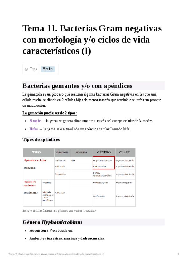 He publicado nuevos apuntes de 3º Microbiología II: Tema 11. Bacterias Gram negativas con morfología y/o ciclos de vida característicos.pdf