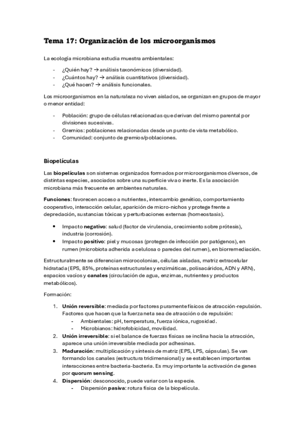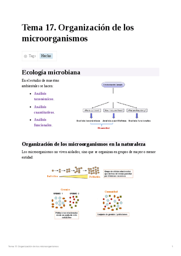 He publicado nuevos apuntes de 3º Microbiología II: Tema 17. Organización de los microorganismos.pdf
