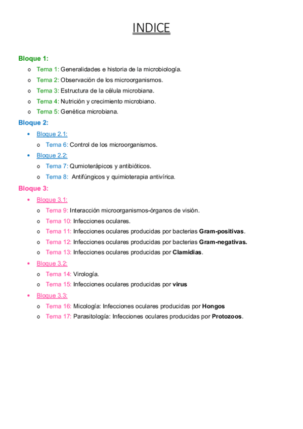 He publicado nuevos apuntes de 4º Microbiología para ópticos-optometristas: Temario