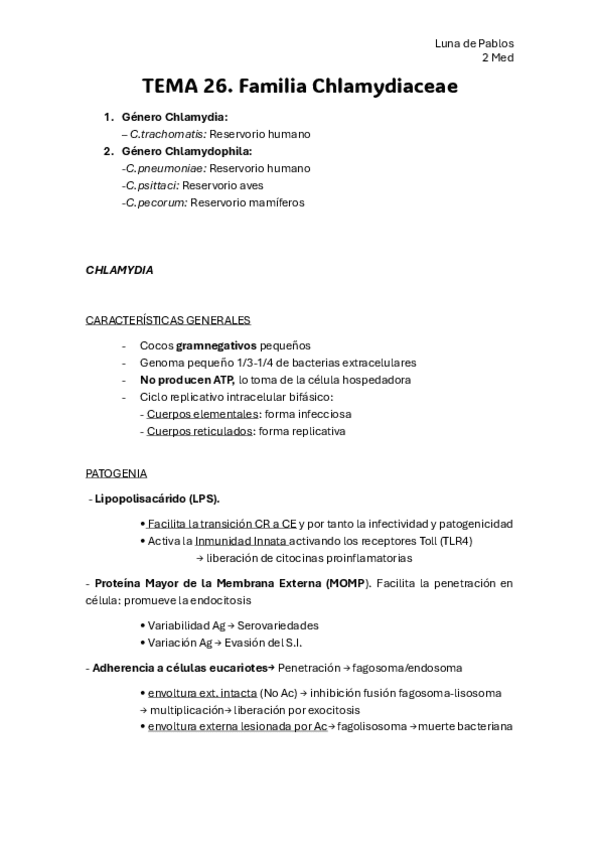 He publicado nuevos apuntes de 2º Microbiología y Parasitología Médica: T.26-Clamidias-25-26.pdf