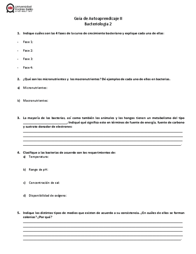 He publicado nuevos ejercicios de 2º Microbiología y Parasitología: Guia-de-Autoaprendizaje-IBacteriologia-1.pdf