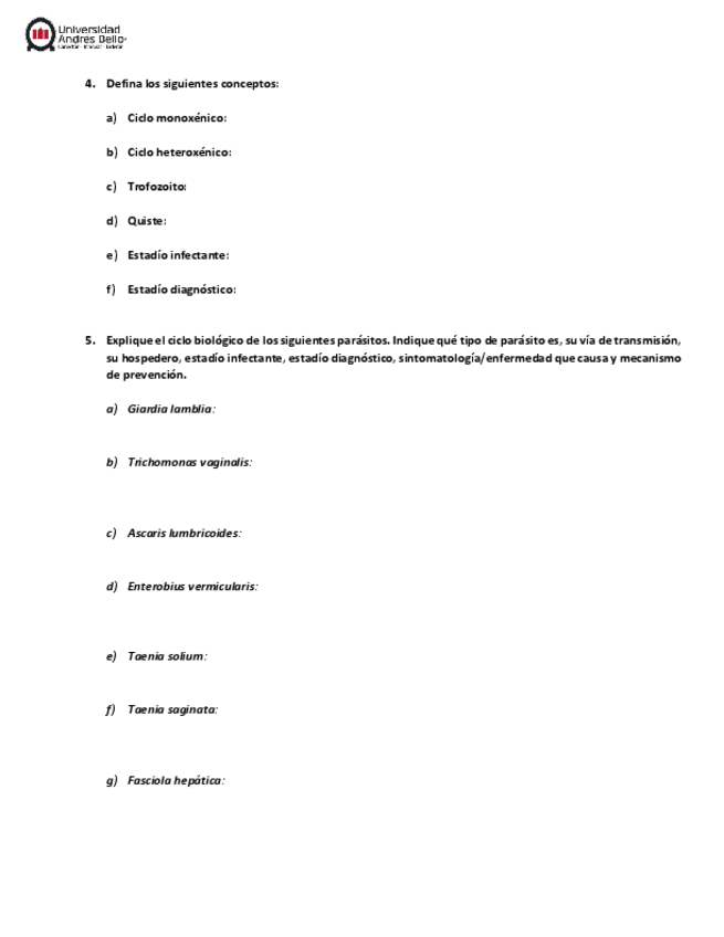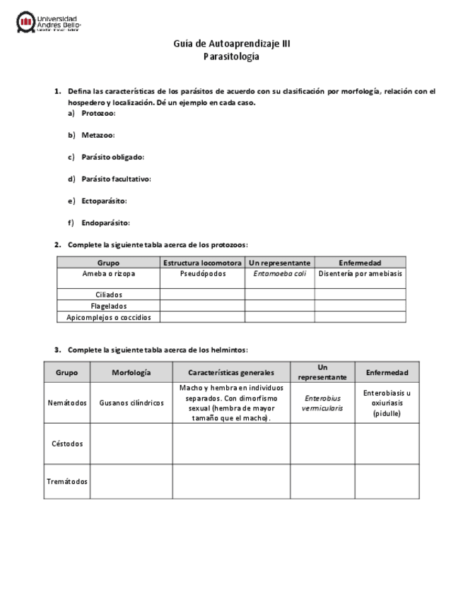 He publicado nuevos ejercicios de 2º Microbiología y Parasitología: Guia-de-Autoaprendizaje-IIIParasitologia.pdf