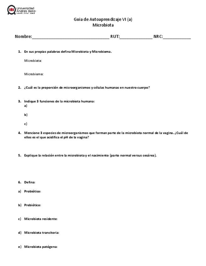 He publicado nuevos ejercicios de 2º Microbiología y Parasitología: Guia-de-Autoaprendizaje-VIaMicrobiota1.pdf