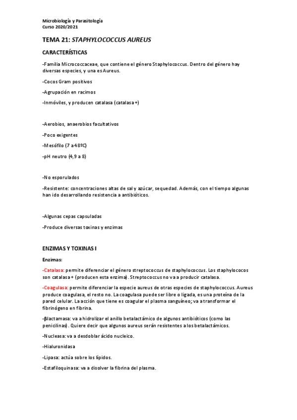 He publicado nuevos apuntes de 2º Microbiología y Parasitología: APUNTES Tema 21 Staphilococcus aureus.pdf
