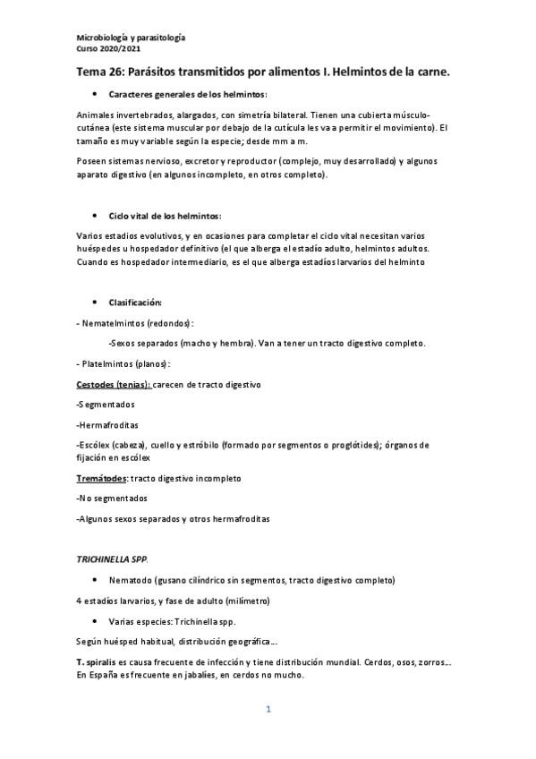 He publicado nuevos apuntes de 2º Microbiología y Parasitología: APUNTES Tema 27 Helmintos de la carne.pdf