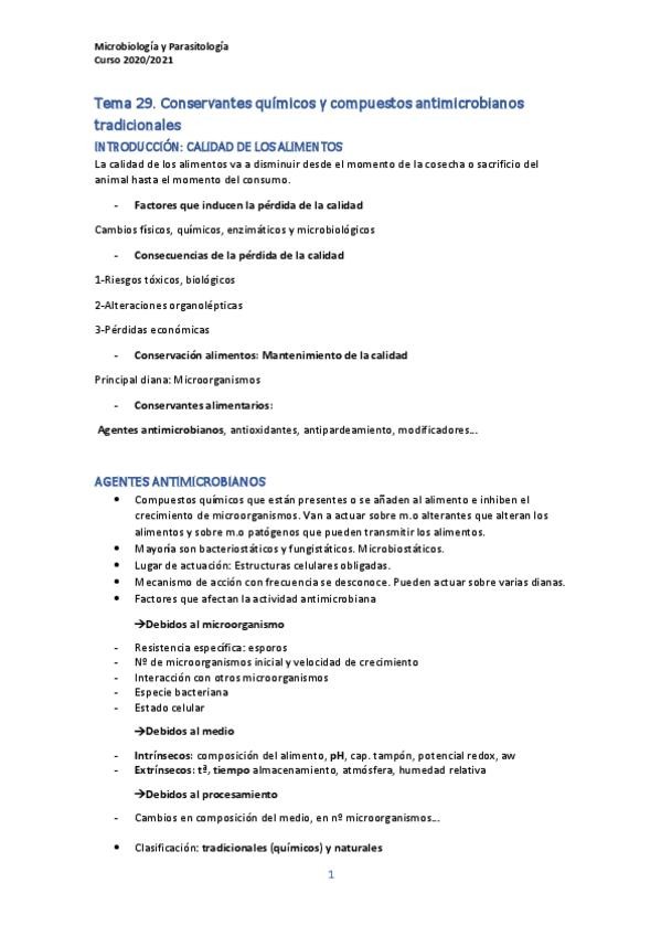 He publicado nuevos apuntes de 2º Microbiología y Parasitología: APUNTES Tema 29 Conservantes químicos.pdf