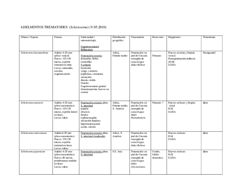 He publicado nuevos apuntes de 2º Microbiología: 6.Tabla-Trematodes-Schistosoma-V.05.2010.pdf
