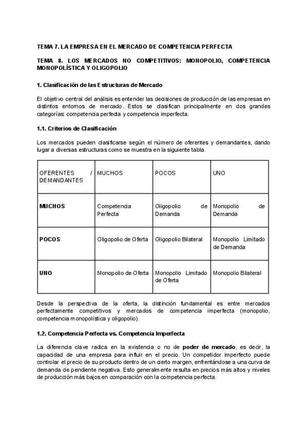 Apuntes Microeconomía Tema 7: La empresa en el mercado de competencia perfecta.