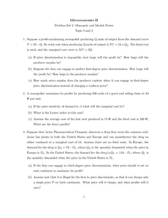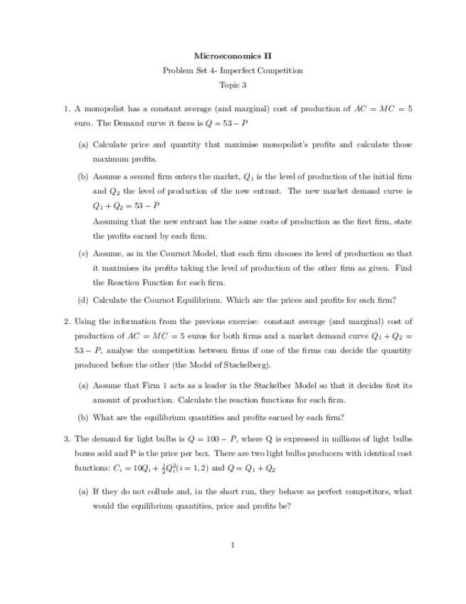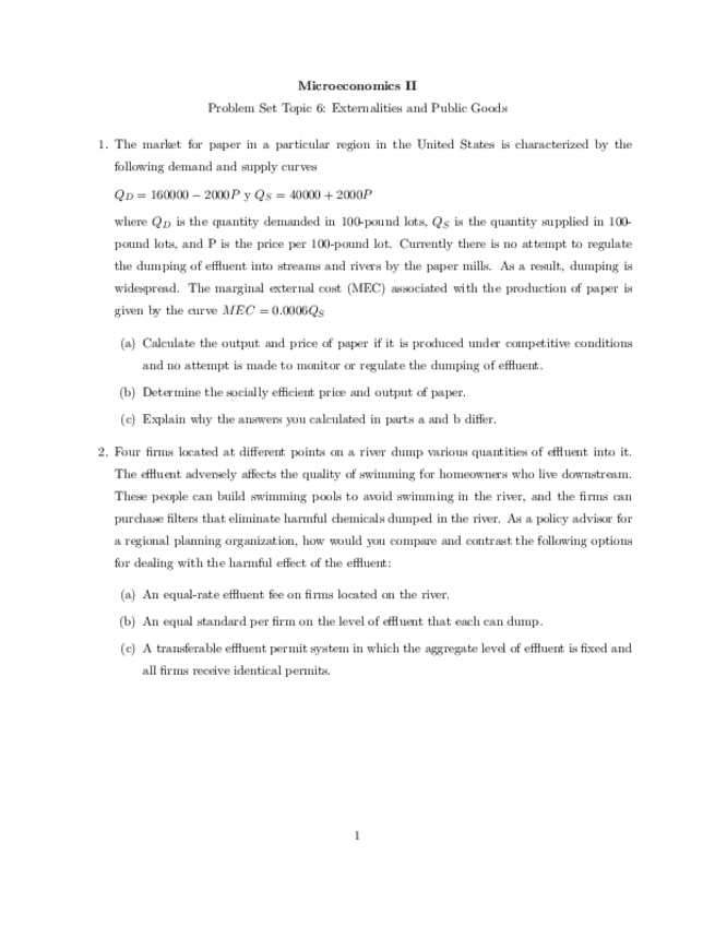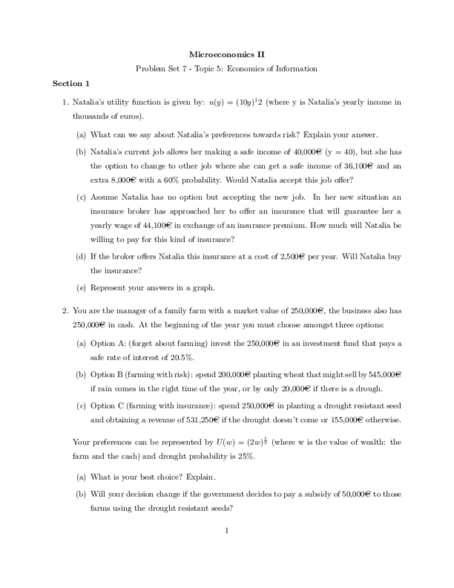 PROBLEM SETS MICRO II