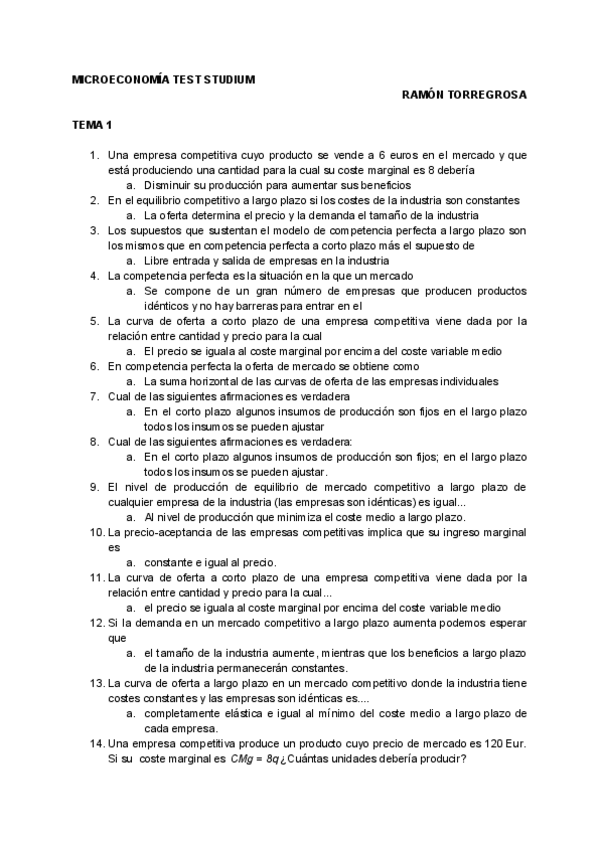 He publicado nuevos ejercicios de 3º Microeconomía II: Test y practicas por temas curso 2019