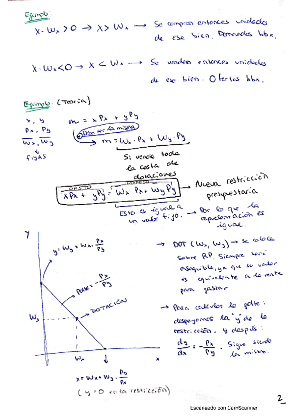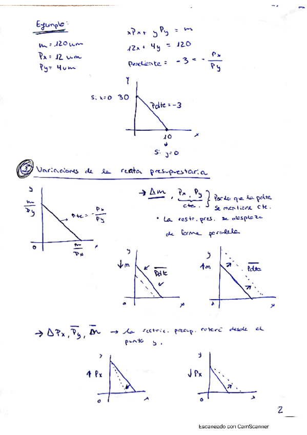 Restricción presupuestaria. Apuntes con anotaciones de clase y ejercicios resueltos.