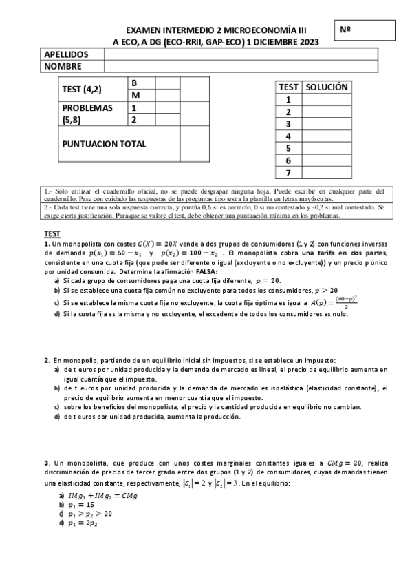 He publicado nuevos examenes de 3º Microeconomía III: Segundo-Parcial-Solucion-Test.pdf