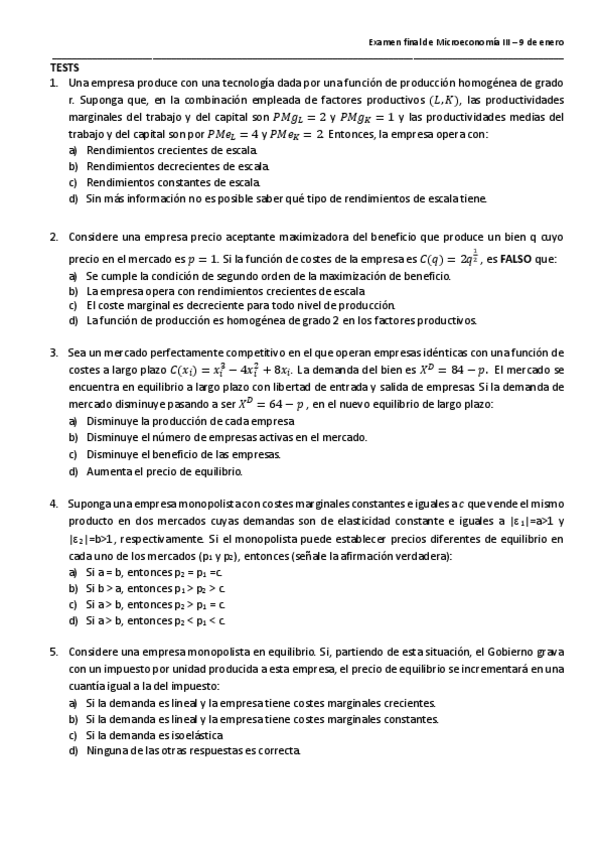 He publicado nuevos examenes de 3º Microeconomía III: TEST exámenes finales (2021-2003) Prod, Cost y Competencia