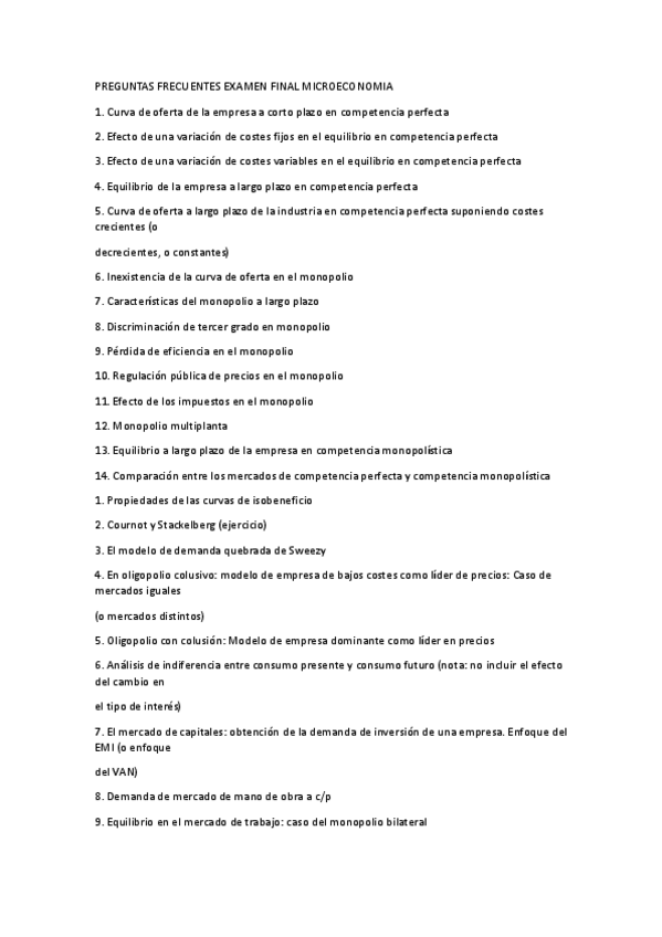 Posibles preguntas para la parte teórica del examen de microeconomía. Las preguntas de la 1 a la 14 corresponden a los temas 1-4 y las preguntas de la 15 a la 28 corresponden a los temas 5-10