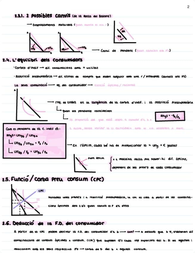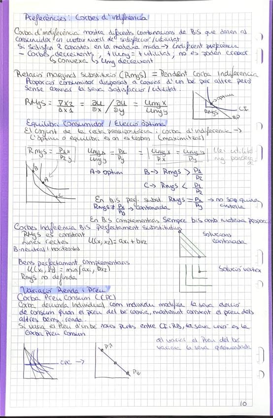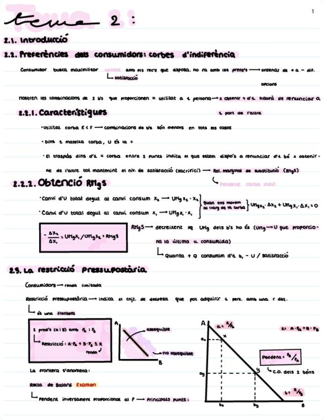 Tema 2: El consumidor (recta pressupostària, corves d'indiferència, efecte renda/substitució/total i utilitats marginals/totals)