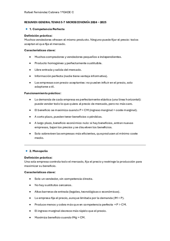 Temas 1 a 7 microeconomía, basado en las diapositivas. Con matrícula de honor.