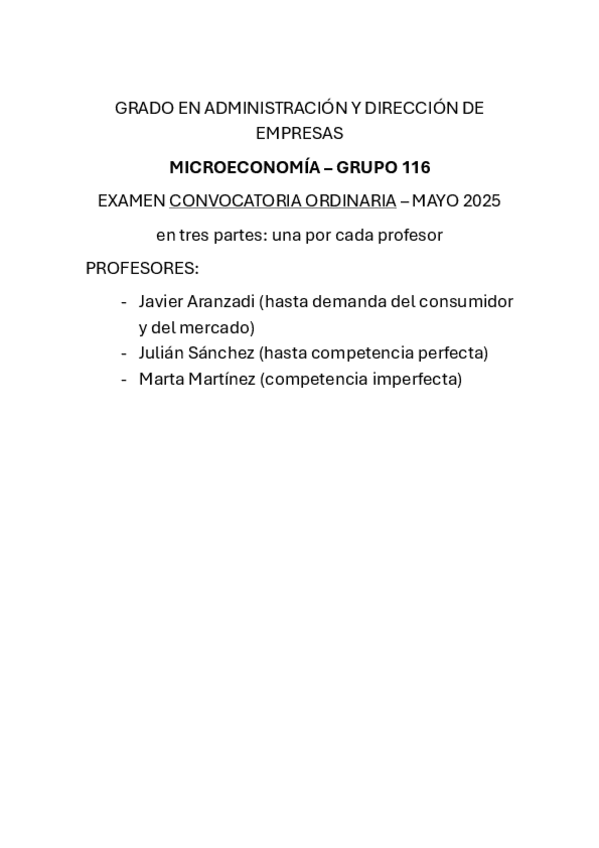 Exámenes ordinaria y extraordinaria - Microeconomía (Año 2023)