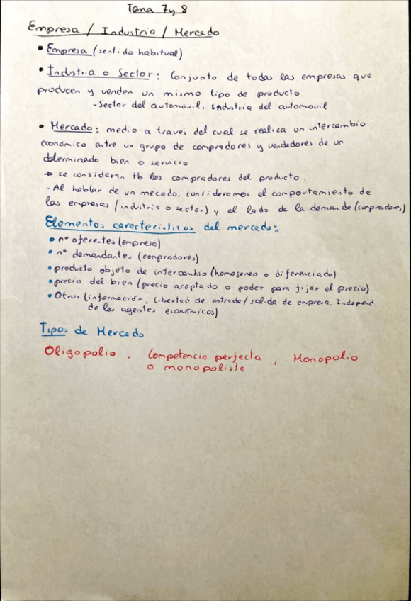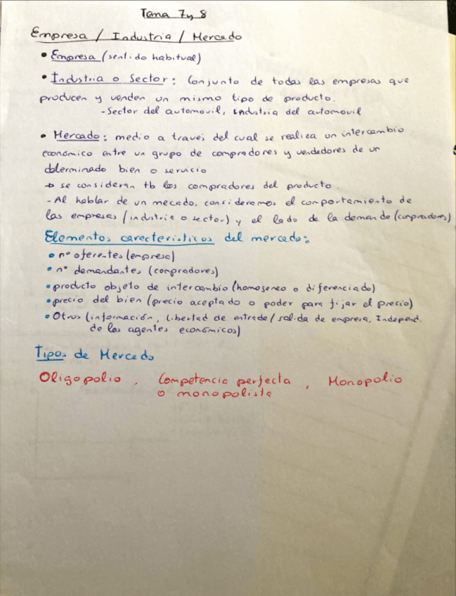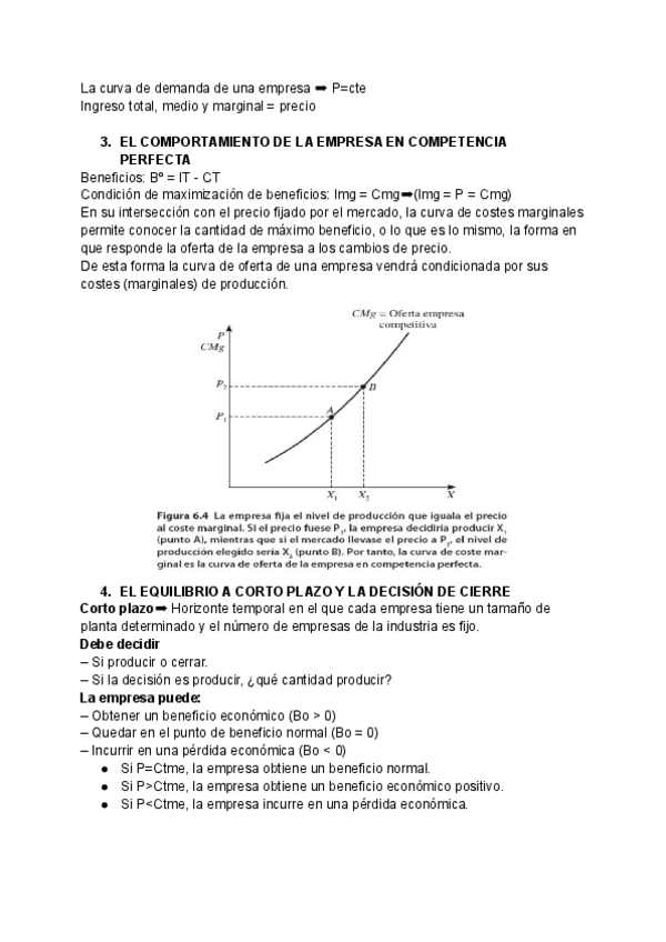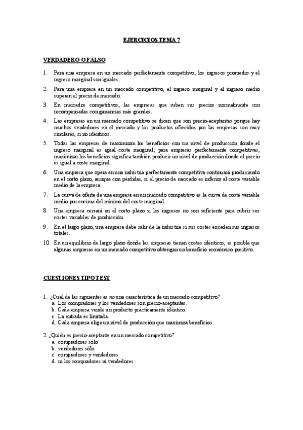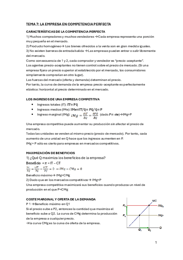 Apuntes Microeconomía Tema 7: La empresa en el mercado de competencia perfecta.
