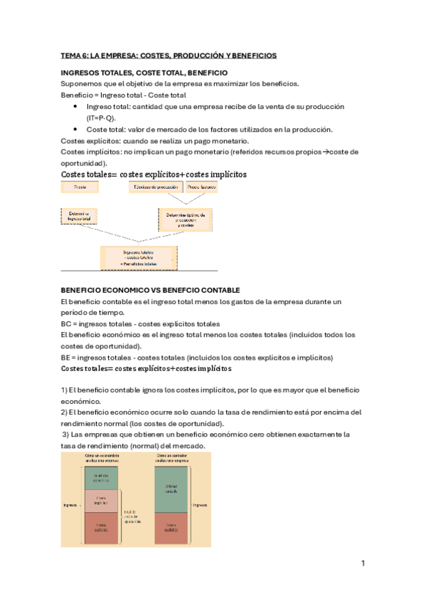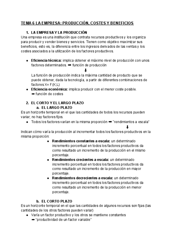 Apuntes Microeconomía Tema 6: LA EMPRESA. PRODUCCIÓN, COSTES Y BENEFICIOS.