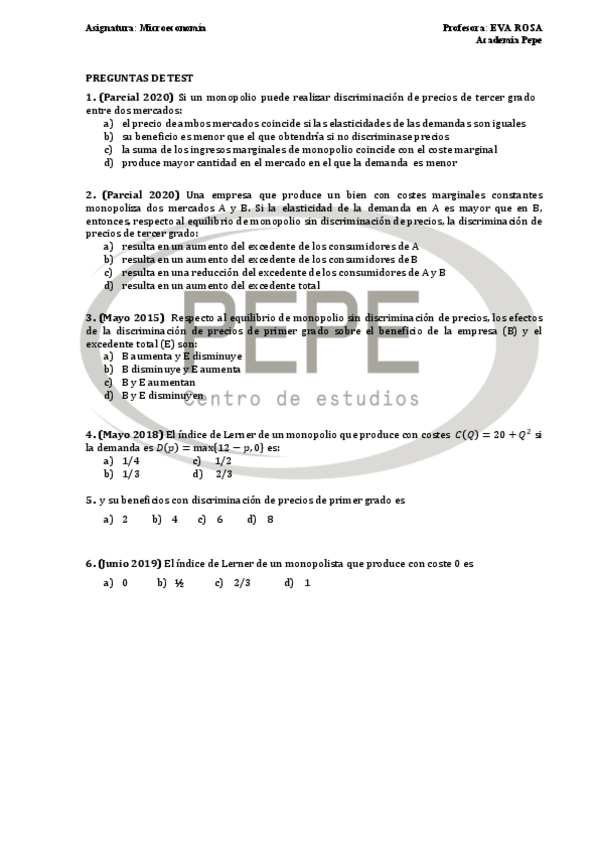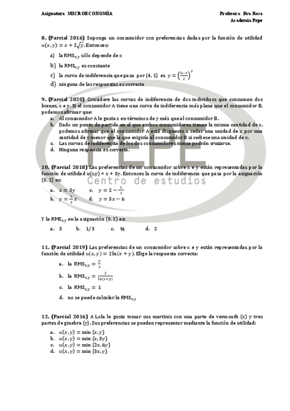 He publicado nuevos examenes de 1º Microeconomía: Parcial-2023-Test.pdf
