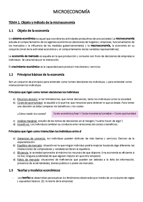 Resúmenes Todos los Temas Microeconomía (teoría)