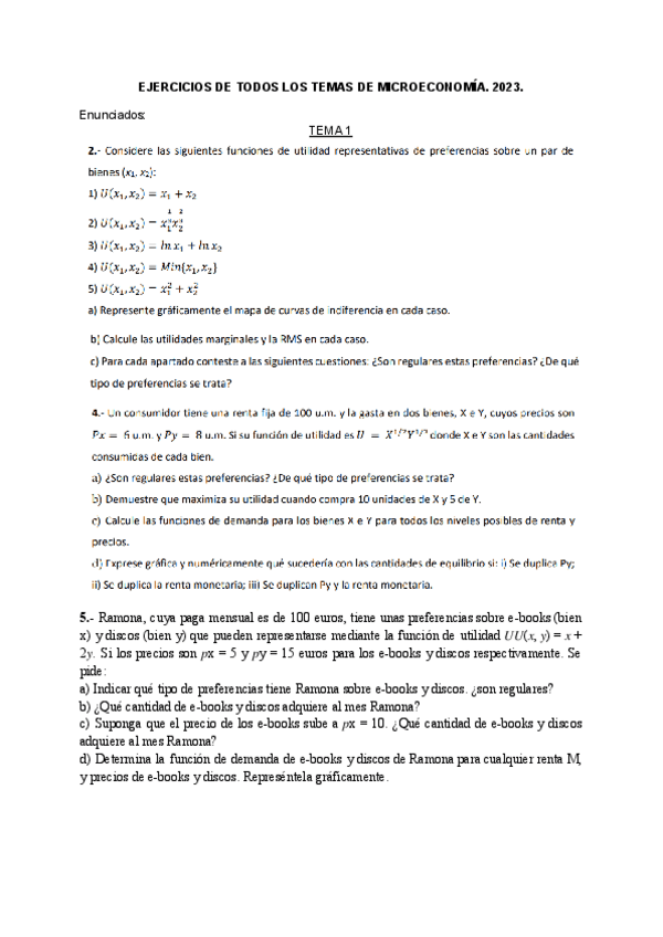 Temario y ejercicios microeconomía