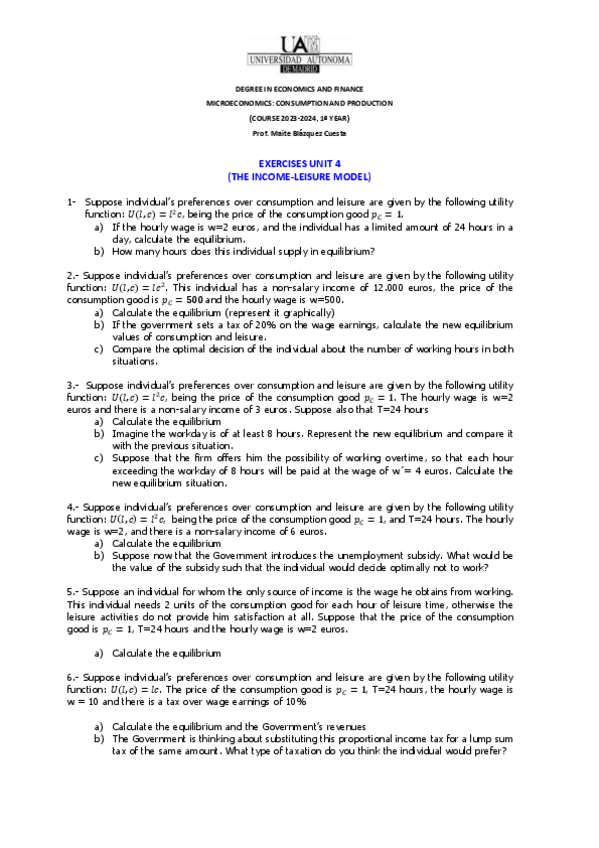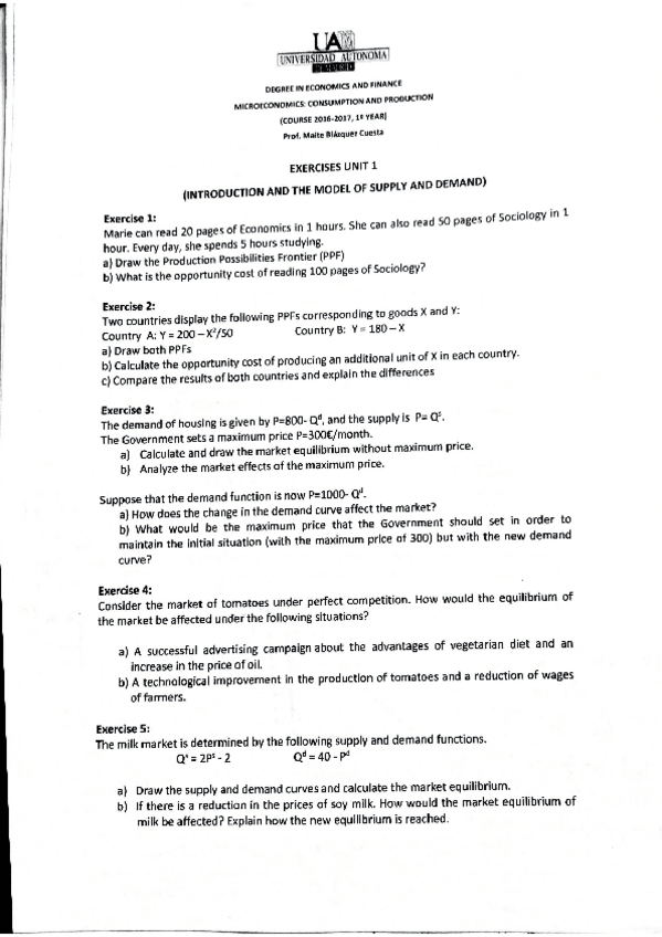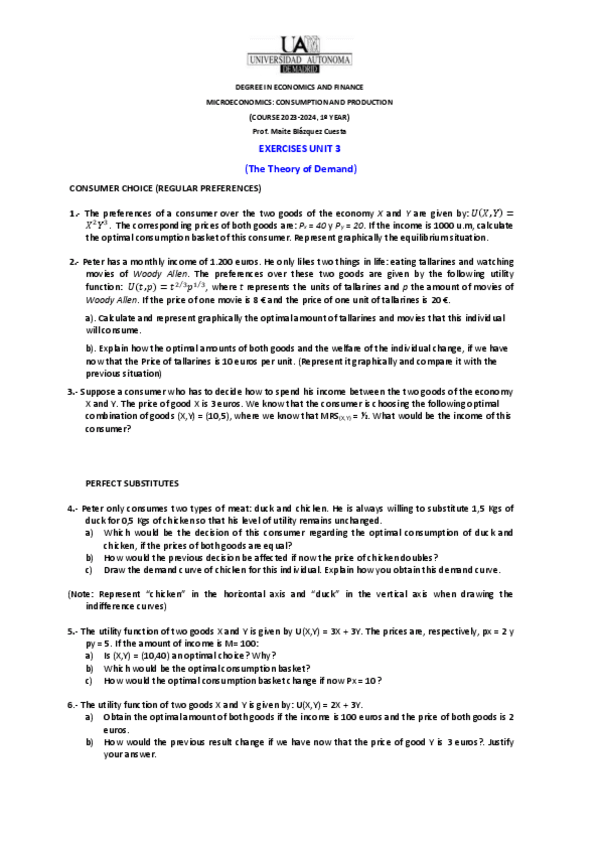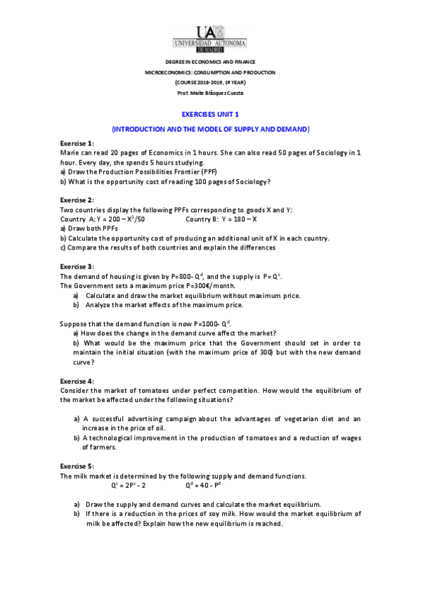 He publicado nuevos ejercicios de 1º Microeconomics: Consumption and Production: ejercicios