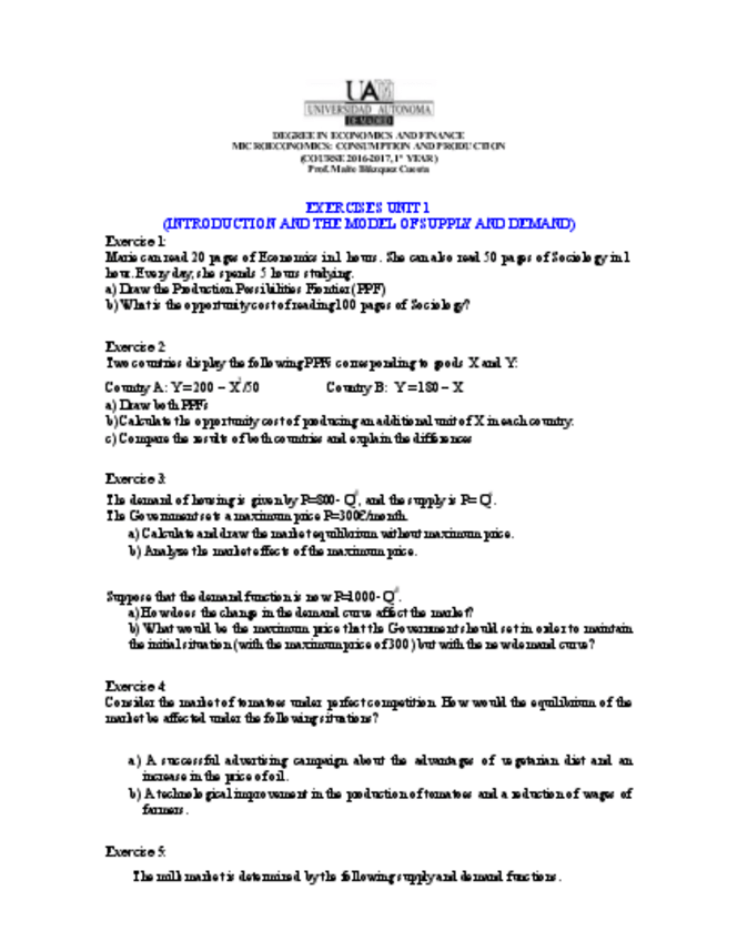 He publicado nuevos ejercicios de 1º Microeconomics: Consumption and Production: Ejercicios Micro u 1-5