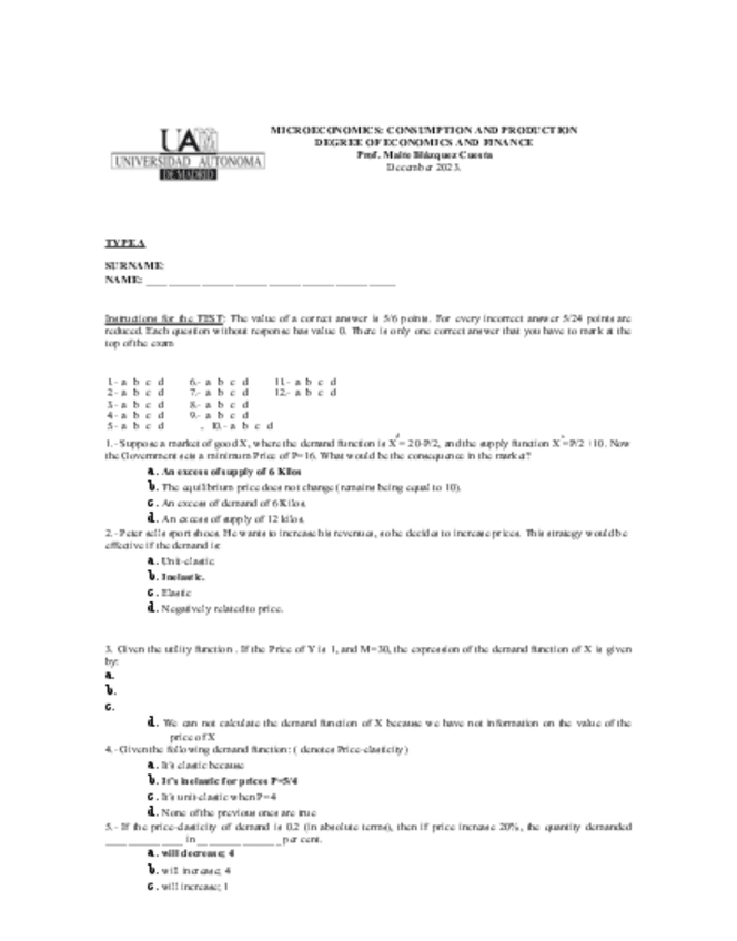 He publicado nuevos examenes de 1º Microeconomics: Consumption and Production: Test-14-December2023TipoA.pdf