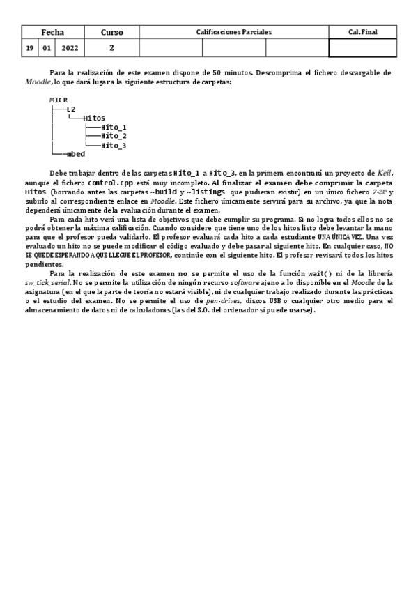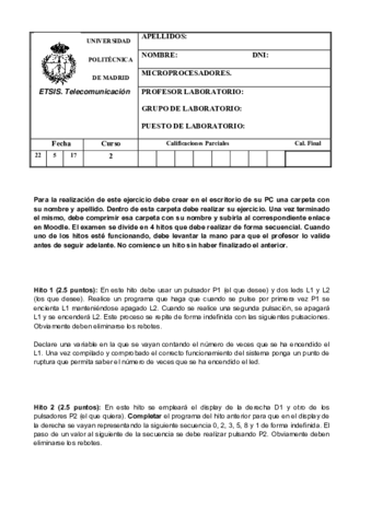 He publicado nuevos examenes de 2º Microprocesadores: Examen PRIMAVERA hito1