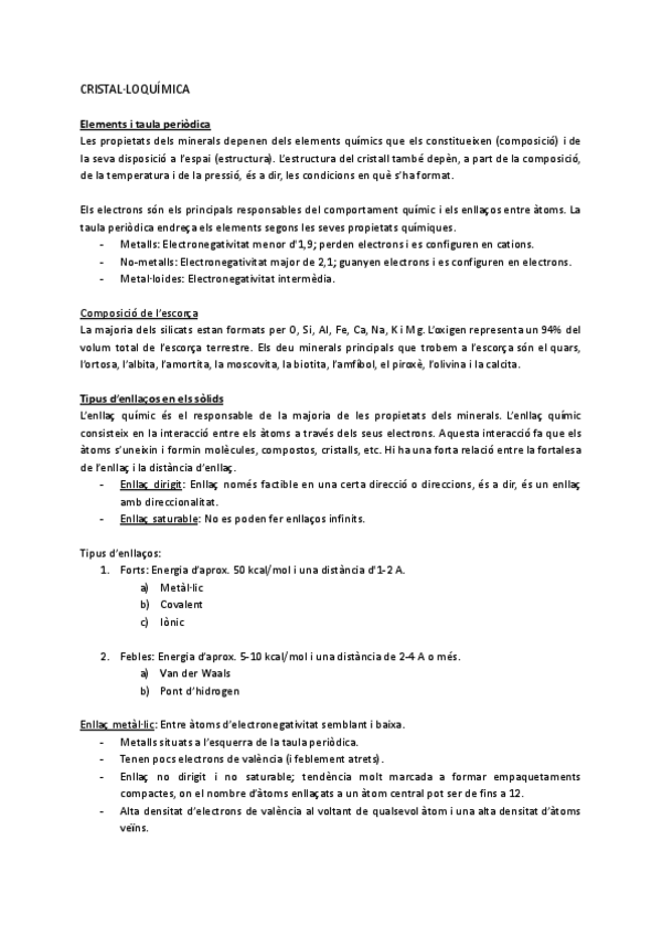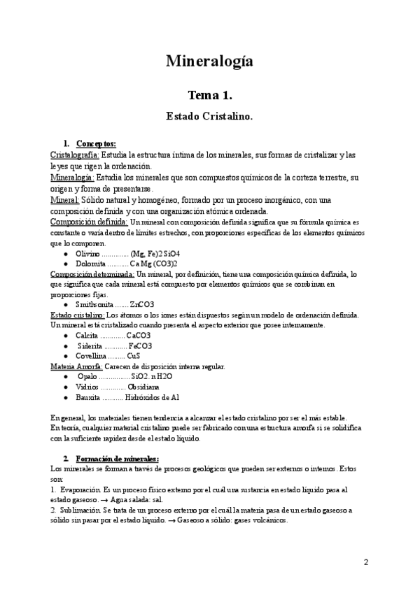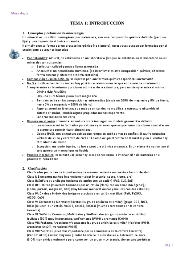 Apuntes tomados en clase de la primera parte de la asignatura de Mineralogía. Puede haber algunos errores o apartados incompletos debido a la velocidad de las explicaciones en clase. Espero que sean de utilidad e iré subiendo poco a poco los temas resta