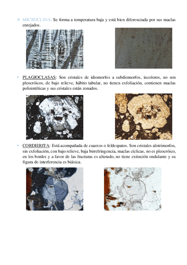 Cómo reconocer los minerales en microscópio, con fotos y una pequeña descripción de cada una.