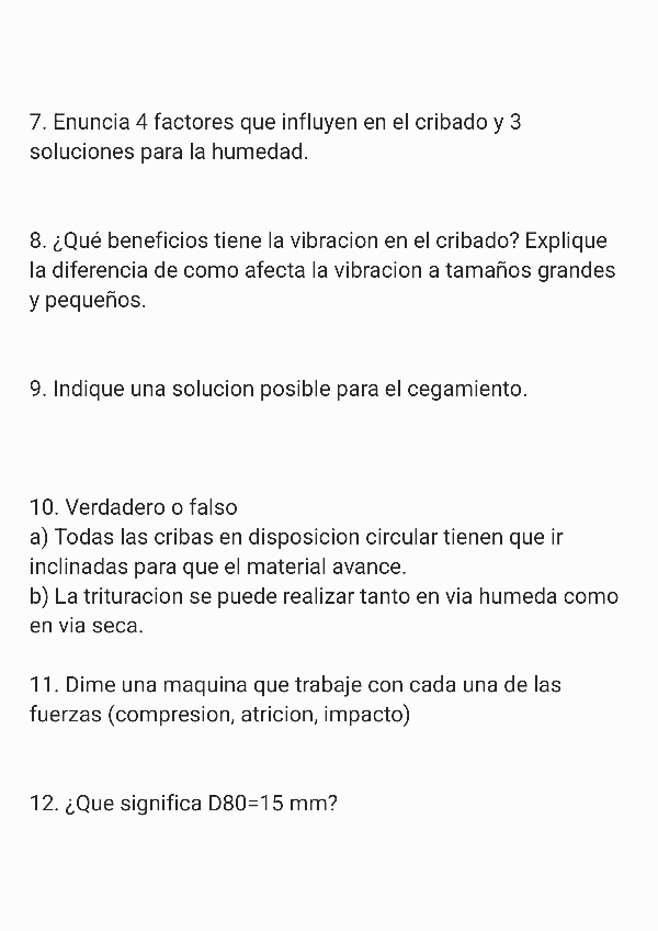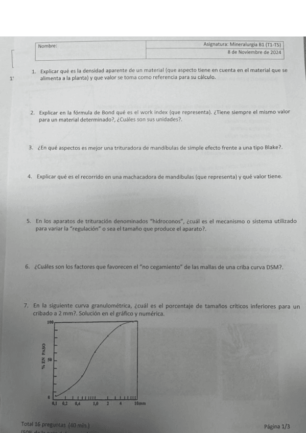 He publicado nuevos examenes de 3º Mineralurgia: Preguntas 1º Parcial (resuelto).pdf