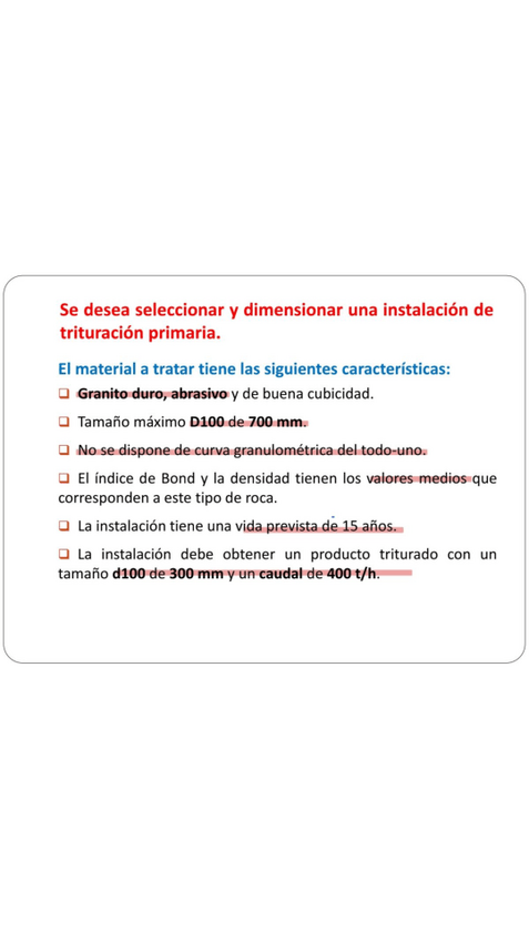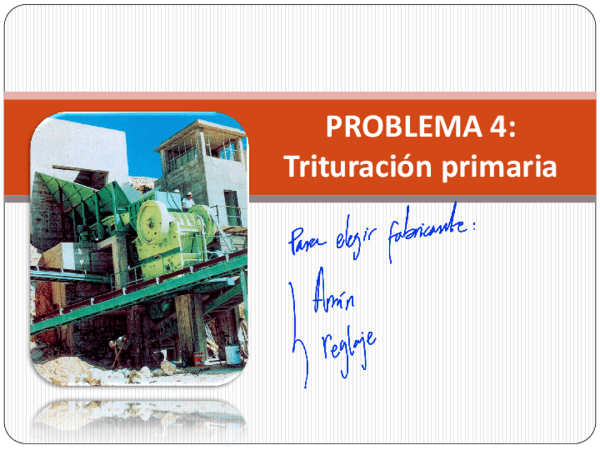 He publicado nuevos ejercicios de 3º Mineralurgia: Problema 4. Trituración Primaria (resolución).pdf
