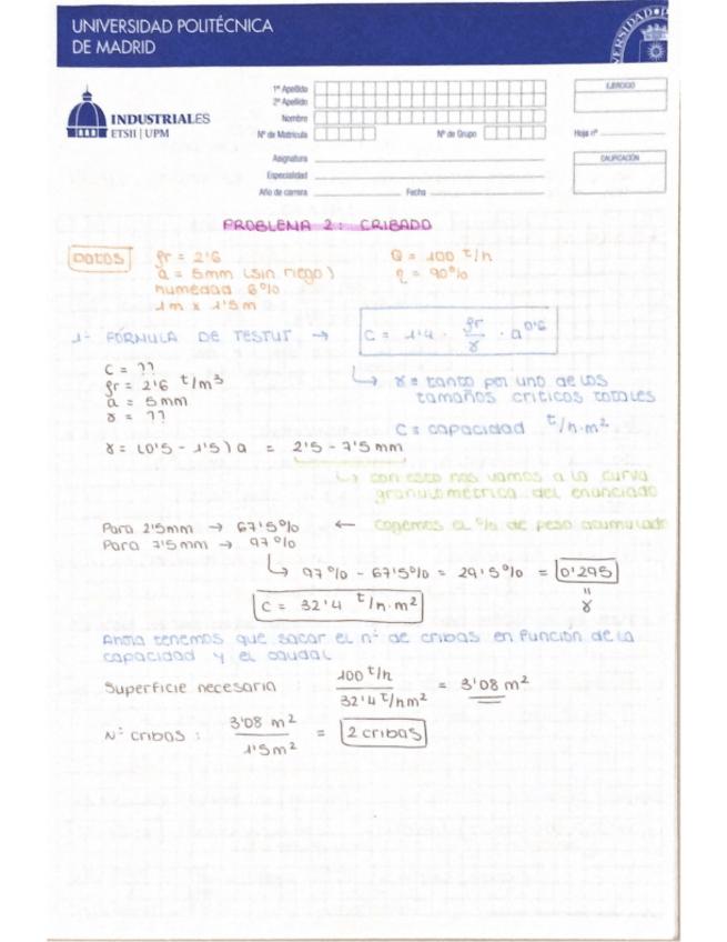 He publicado nuevos ejercicios de 3º Mineralurgia: Problema 2. Cribado (resuelto).pdf