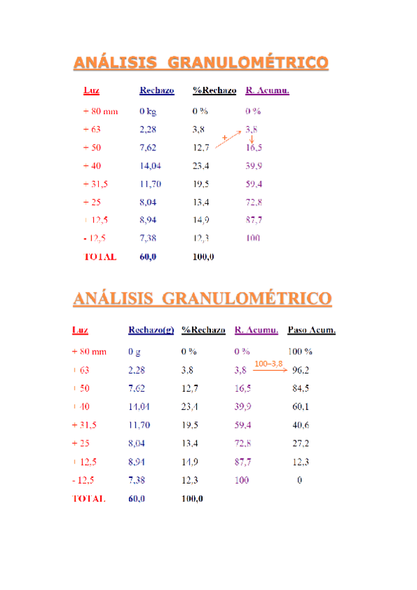 He publicado nuevos ejercicios de 3º Mineralurgia: Ejercicio Análisis Granulométrico (resuelto).pdf