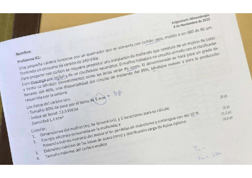 He publicado nuevos ejercicios de 3º Mineralurgia: Problema-5.-Molino-de-Bolas-resuelto.pdf