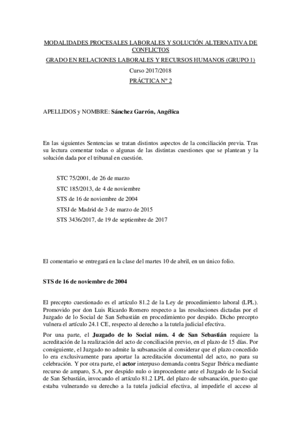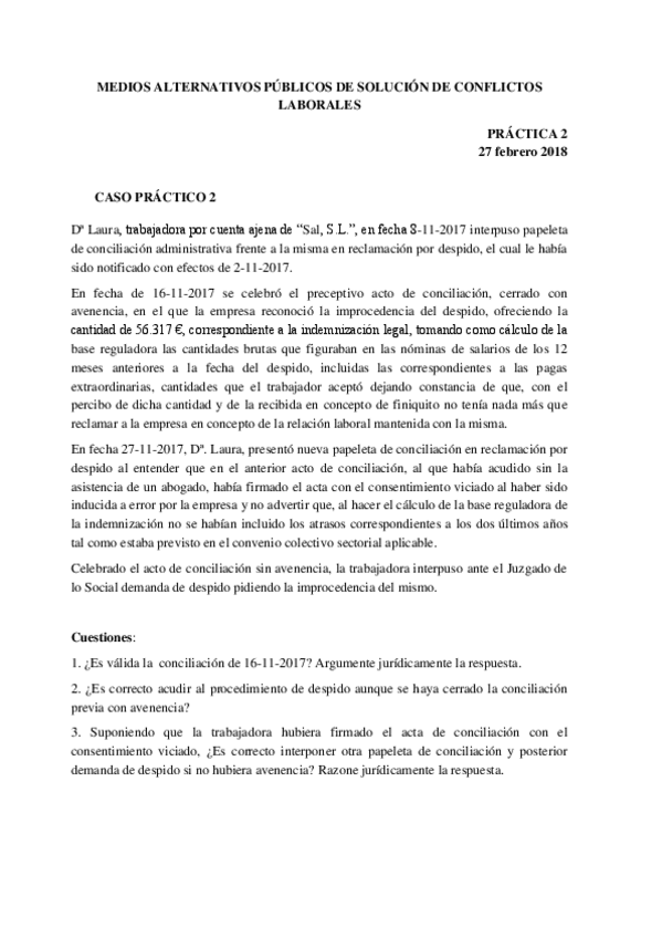 He publicado nuevos practicas de 4º Modalidades Procesales Laborales y Solución Alternativa de Conflictos: PRÁCTICA 2.pdf