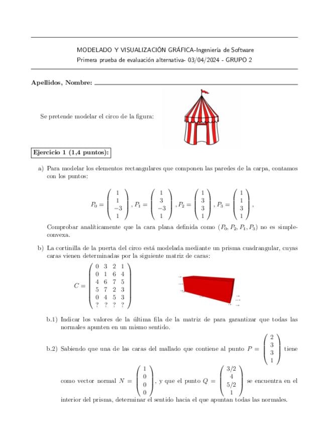 He publicado nuevos examenes de 3º Modelado y Visualización Gráfica: Parcial 2 2024 G1.pdf