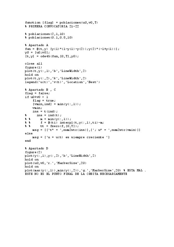 He publicado nuevos practicas de 3º Modelización Matemática: Matlab Ejercicios resueltos 1 parcial