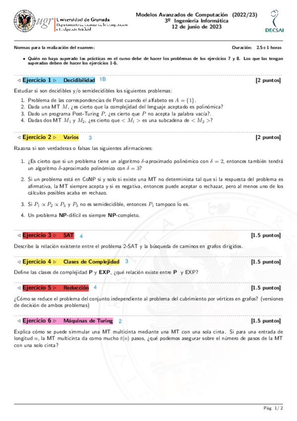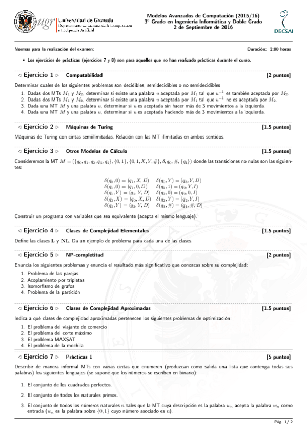 He publicado nuevos examenes de 3º Modelos Avanzados de Computación (Especialidad Computación y Sistemas Inteligentes): ex15duda.pdf