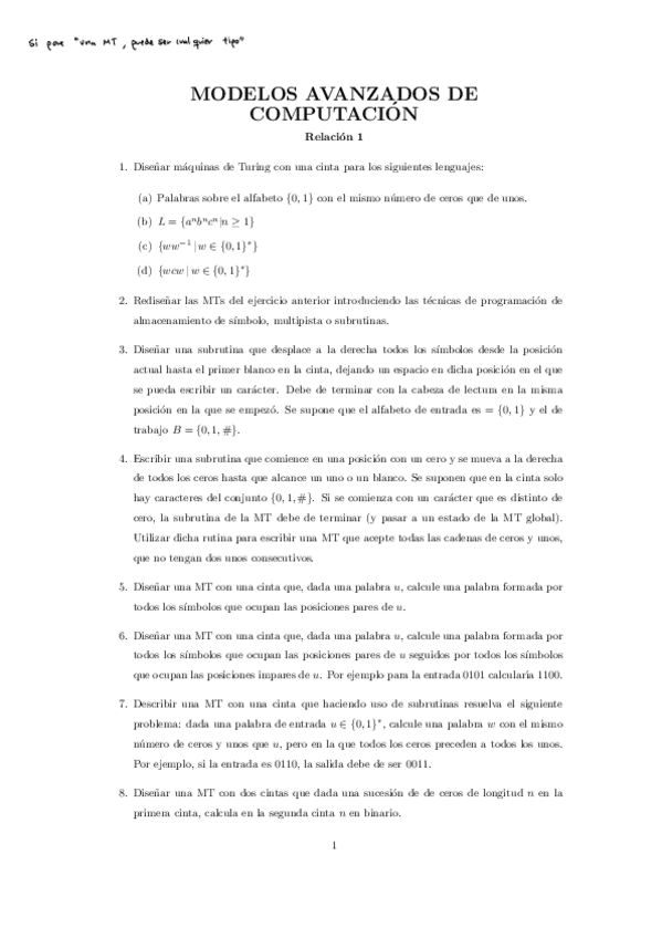 He publicado nuevos ejercicios de 3º Modelos Avanzados de Computación (Especialidad Computación y Sistemas Inteligentes): Relacion-1-MAC.pdf