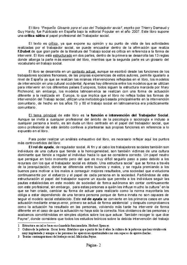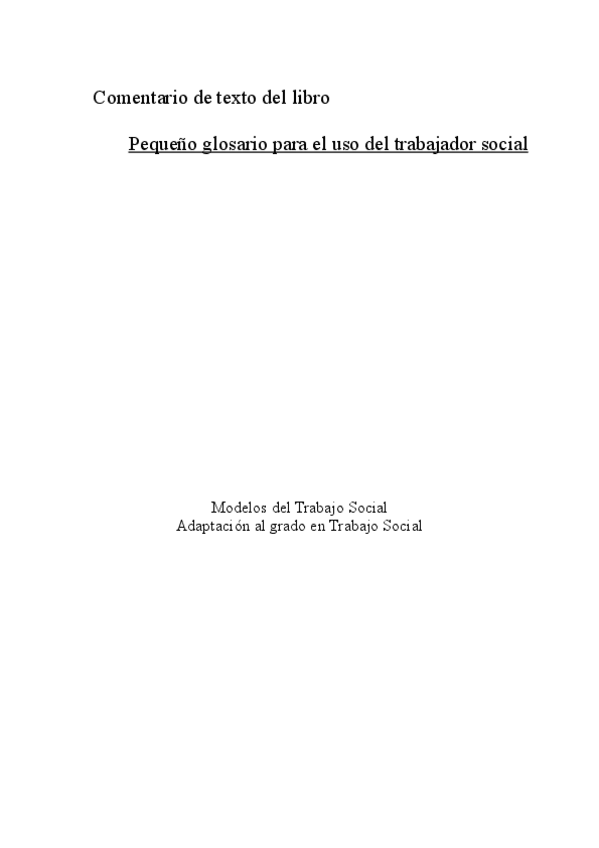 Recesión del libro pequeño glosario del Trabajo Social