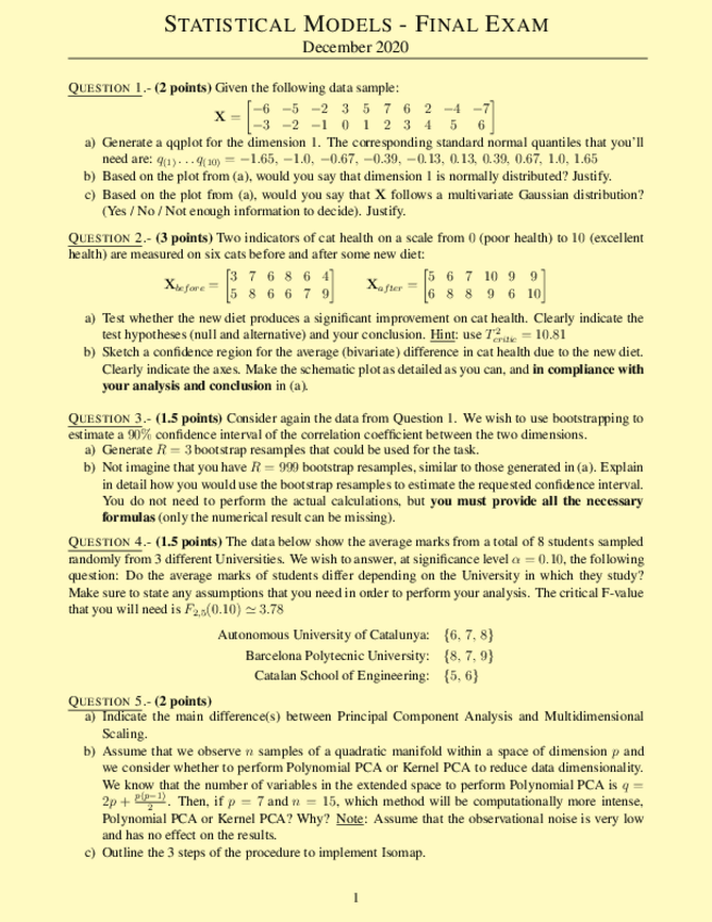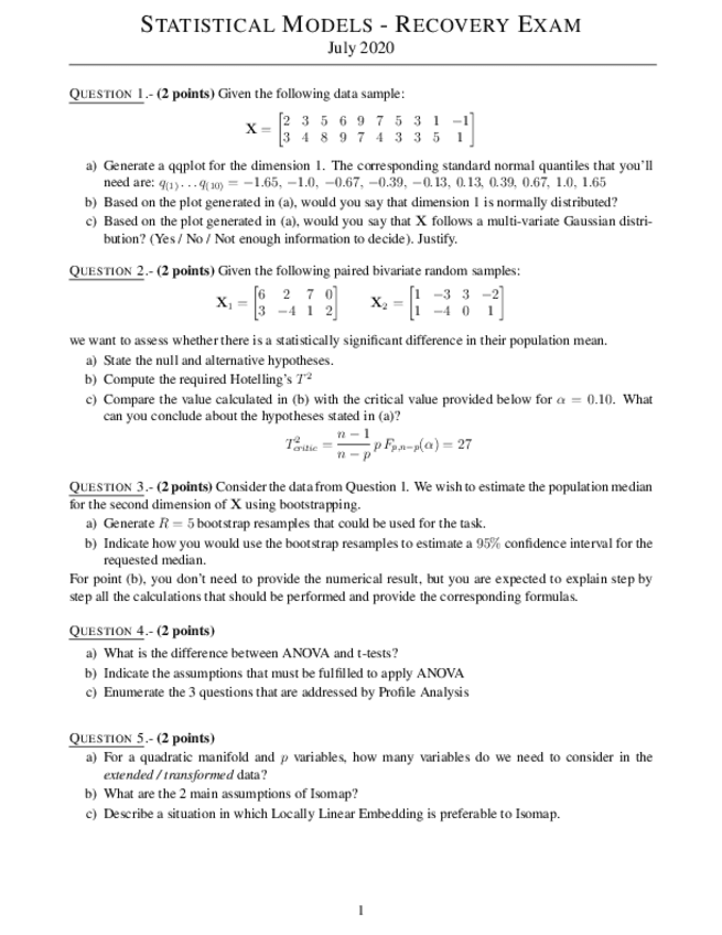 Statistical Models Exams