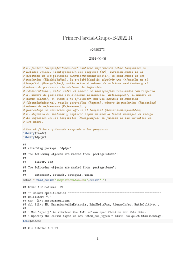 He publicado nuevos examenes de 3º Modelos Lineales y Diseño de Experimentos: PRACTICA 2022 RESUELTO primer parcial grupo B