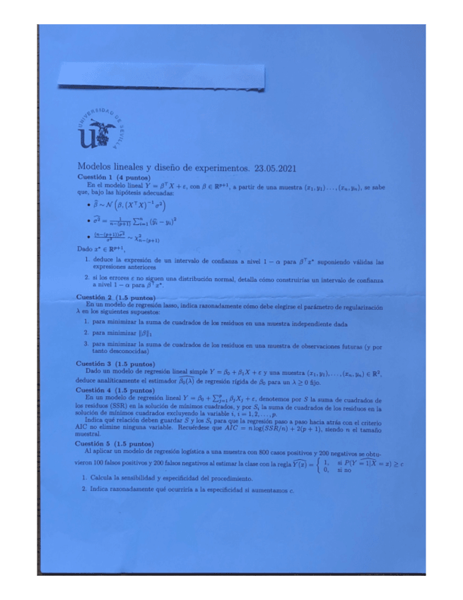 He publicado nuevos examenes de 3º Modelos Lineales y Diseño de Experimentos: EXAMEN-PREFINAL-2024.pdf