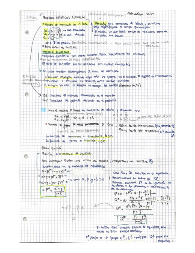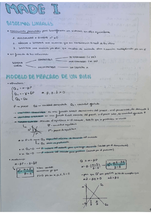 Apuntes primer y segundo parcial para modelos matemáticos para ADE I